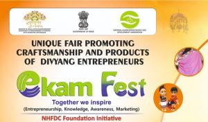 नई दिल्ली में हस्तशिल्प और दिव्यांग शिल्पकारों एवं उद्मियों के उत्पादों को बढावा देने लिए “एकम मेला” का शुभारंभ किया गया। इस प्रदर्शनी व मेले का आयोजन राष्ट्रीय दिव्यांगजन वित्त विकास निगम (National Handicapped Finance Development Corporation – NHFDC) द्वारा सामाजिक न्याय और अधिकारिता मंत्रालय के तहत किया जा रहा है। NHFDC संस्था दिव्यांग शिल्पकारों और उद्यमियों द्वारा बनाए गए उत्पादों की मार्केटिंग के लिए ब्रांड और मंच तैयार करने का काम कर रहा है। ब्रांड का नाम “एकम” चुना गया है। EKAM जो उद्यमिता, ज्ञान, जागरूकता, मार्केटिंग का प्रतीक है।
