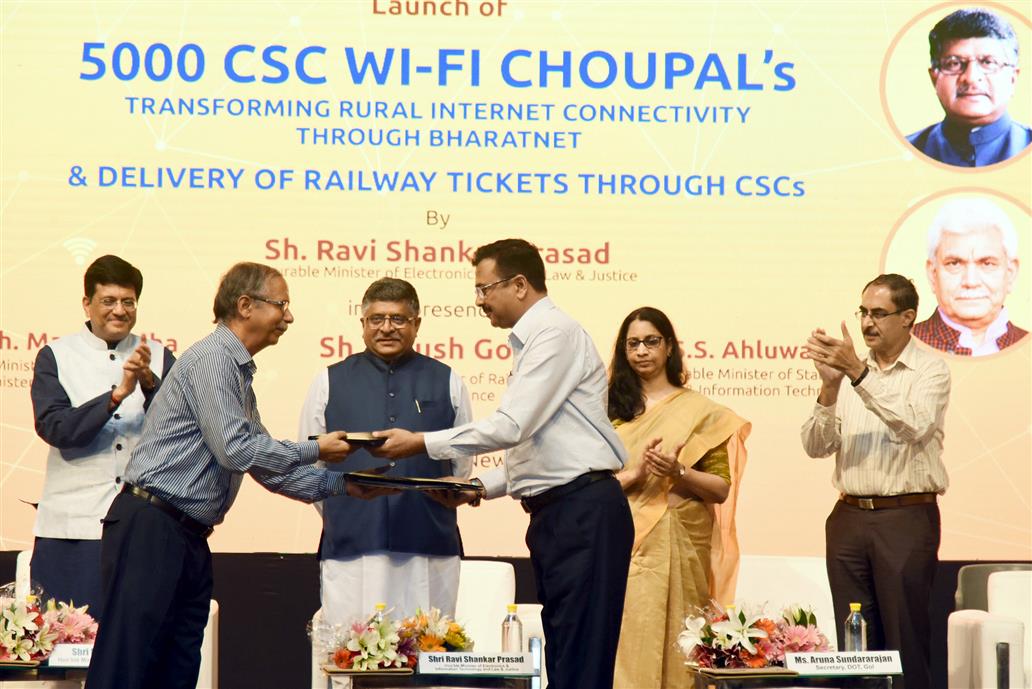 सरकार ने आम सेवा केंद्रों के माध्यम से गांवों में 5000 वाईफाई चौपाल और रेल टिकटों की डिलीवरी का शुभारंभ किया. इसका उद्घाटन नई दिल्ली में इलेक्ट्रॉनिक्स और आईटी मंत्री रविशंकर प्रसाद द्वारा किया गया था. इस कदम का उद्देश्य BharatNet के माध्यम से ग्रामीण इंटरनेट कनेक्टिविटी को बदलना है