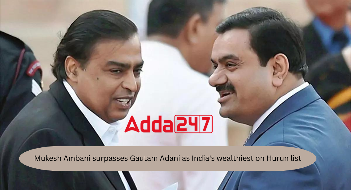 हाल ही में जारी 2023 के लिए 360 वन वेल्थ हुरुन इंडिया रिच लिस्ट के अनुसार, रिलायंस इंडस्ट्रीज के चेयरमैन मुकेश अंबानी अडानी समूह के गौतम अडानी को पीछे छोड़ते हुए सबसे अमीर भारतीय का खिताब हासिल कर चुके हैं।
